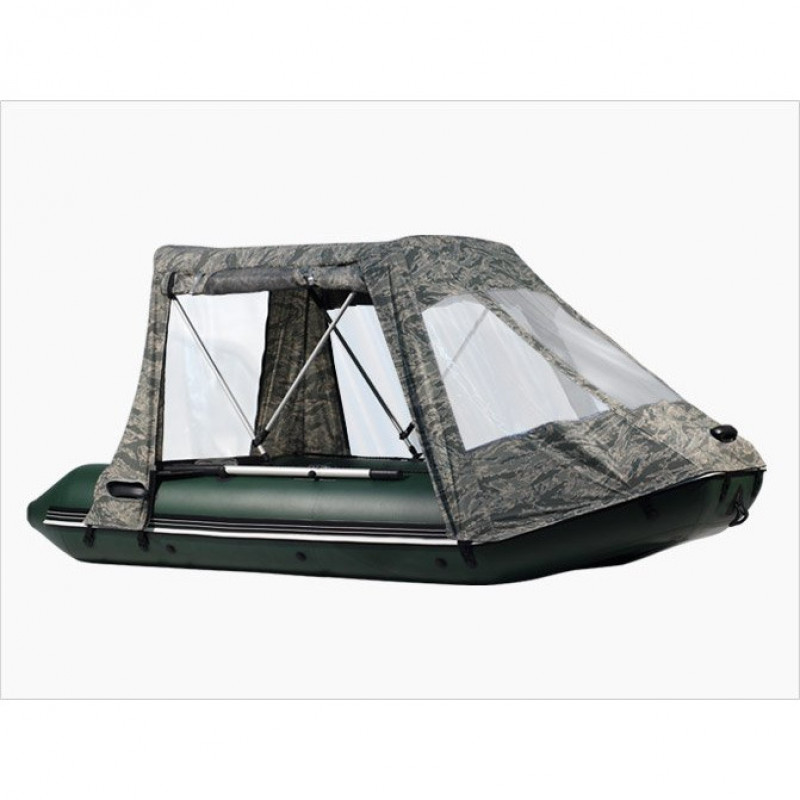 полностью защищает пассажиров судна от ветра, дождя или солнца. В тенте предусмотрены окна, закрытые сеткой. Они пропускают воздух, предотвращая попадание насекомых в кокпит.